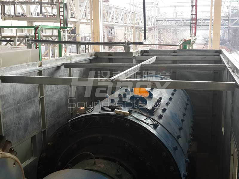 案例簡介:本項目解決了廠內2臺球磨機噪聲治理中吸隔音片板組合拆卸不便、無檢修預留口或太小、抗振能力差、電氣配套不全、無防火性能等一系列問題。治理后從原120dB(A)降至83dB(A),符合國家規定值。