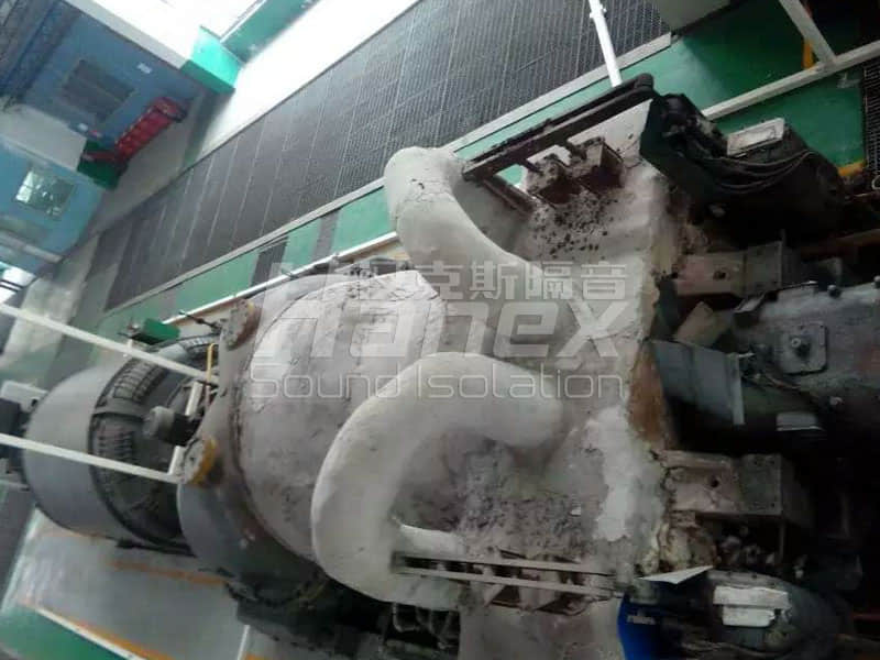 案例簡介:廠內配有60000Kw汽輪機,運行時噪聲較大,原先配有的汽輪機保溫殼體具有一定的降噪效果,但空間小、不利于檢修,且隔音效果不佳。漢克斯隔音針對客戶需求重新設計汽輪機隔聲罩,預留空間、增設隔音門窗,方便工人日常巡查及設備維護,且配備散熱系統,保持罩內溫度均衡。